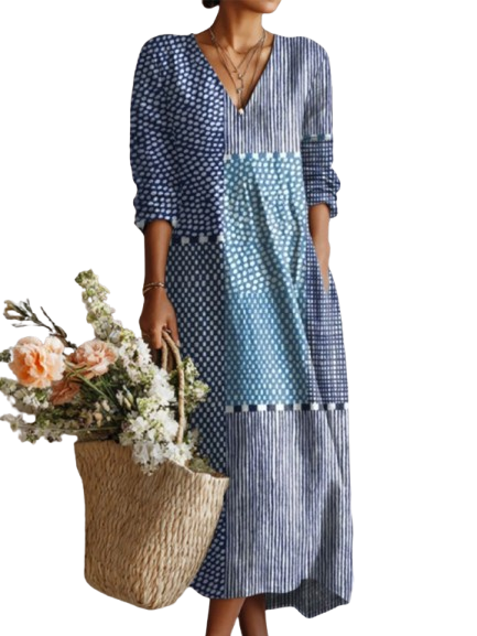 LANA | Vintage Abstract Geometry Art Print Linen Pocket Dress