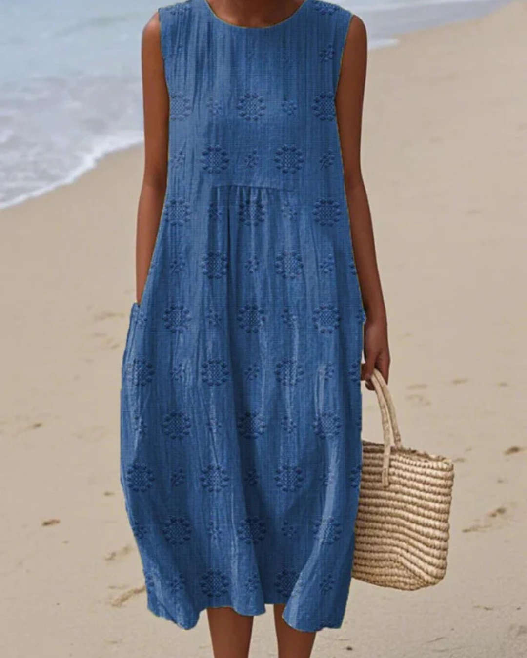Crafted from lightweight and breathable fabric, this midi dress drapes beautifully, allowing you to move freely while looking effortlessly chic. Its loosely flowing silhouette effortlessly flatters every figure, making you feel confident and at ease. Whether you're enjoying a sunlit brunch or strolling along the beach, this dress becomes a second skin, keeping you cool and comfortable all day long.